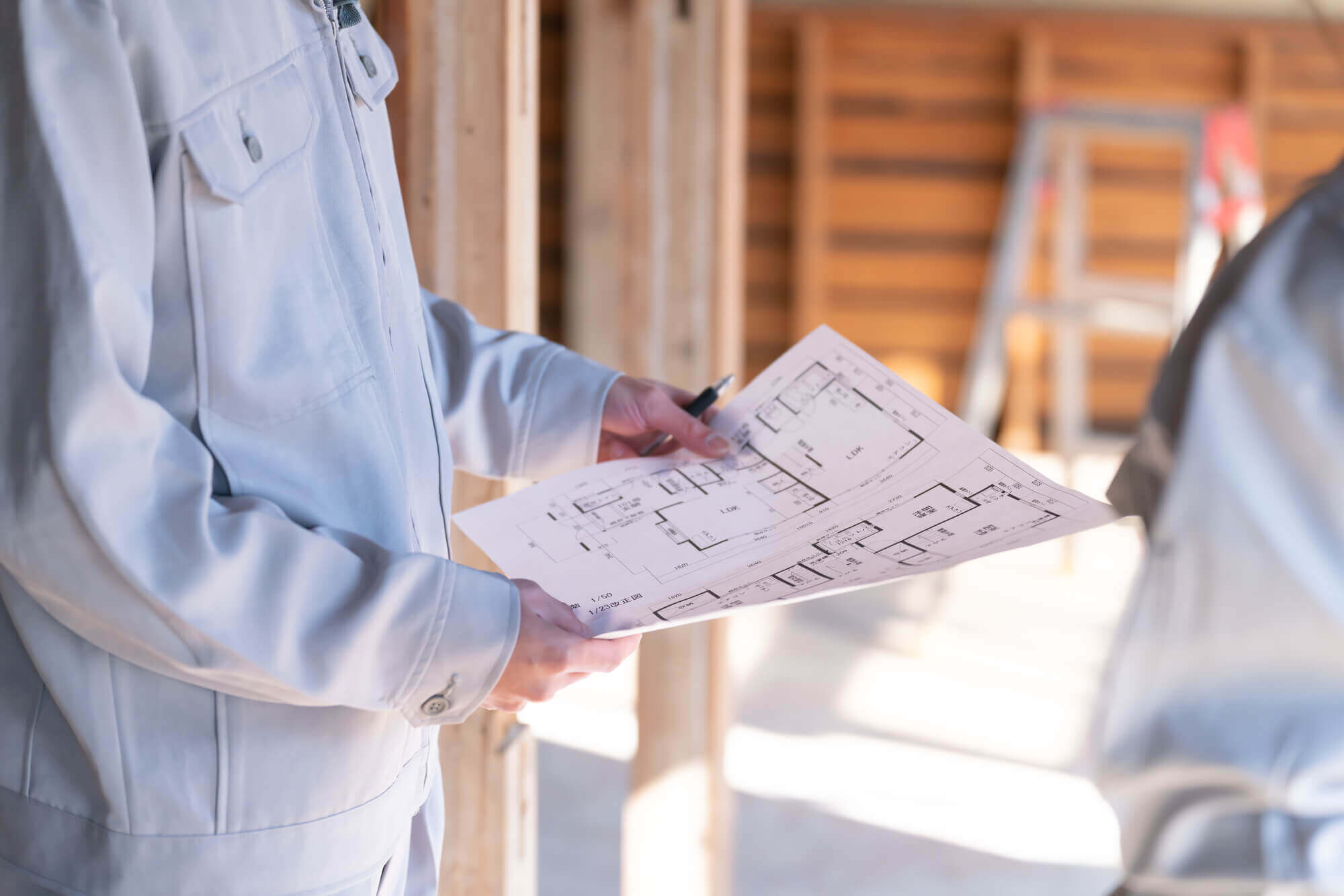 大工の主な役割は、建築士が作成した設計図(図面)を読み解き、平面の世界を立体の建物へと組み上げることです。その業務範囲は非常に広く、柱や梁(はり)を組んで建物の骨組みを作る「建て方」から、床・壁・天井などを整える「造作」まで多岐にわたります。現場では、単に図面通りに進めるだけでなく、建物ごとの条件や納まりを確認しながら微調整を行います。こうした判断力は、現場経験を重ねることで少しずつ身についていきます。